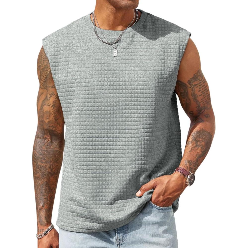 Runcati Men’s Workout Tank Tops Waffle Casual Sleeveless T Shirts Gym Cut Off Beach Summer Tee(Light Grey)